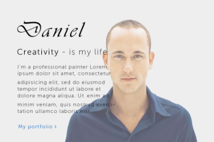 Задача была сделать простенький макет сайта-визитки художника Даниэля. Сайт был сделан воздушный, в легких тонах, упор был сделан на контенте.