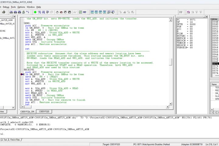 MCU по интерфейсу SMBUS(I2C) принимает данные от датчика AHT25 температуру и влажность. И кладёт в определённое место, для последующего использования.