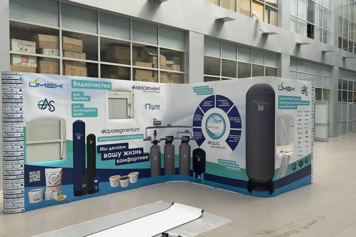 Стенд для компании Аквасегмент в связи с участием в международной выставке технологий и оборудования для коммунальной и промышленной водоподготовки, водоснабжения, водоотведения и очистки сточных вод ЭкваТэк