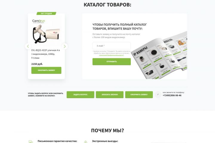 Вёрстка лендинга по продаже систем видеонаблюдения и посадка вёрстки на word press.