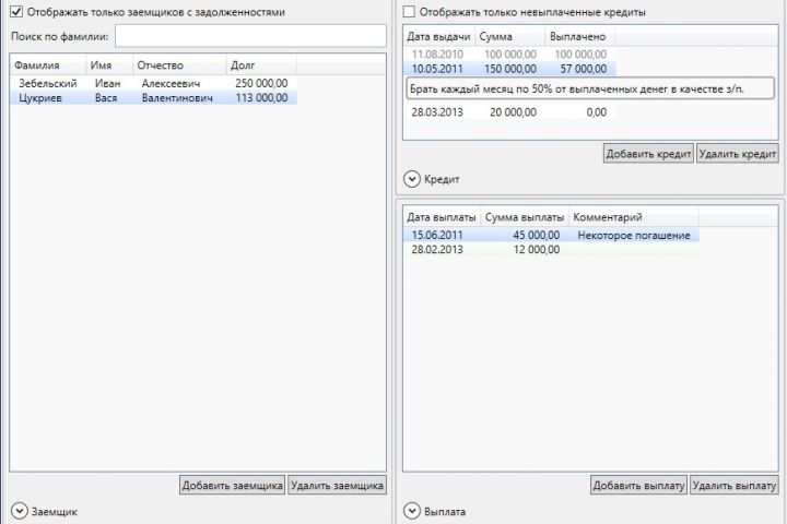 Учет кредитов, выданных организацией, своим сотрудникам.