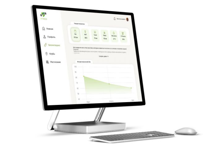 Задача: сделать страницу личного кабинета для фитнесс-клуба "Биоимпеданс". На странице клиент должен видеть свои текущие показатели и историю по каждому из показателей с графиком по периодам (квартал, полугодие, год, весь период). Показатели: вес, ИМТ, объём талии, объём бёдер, жировая масса, скелетно-мышечная масса. Декстоп+мобильный адаптив.