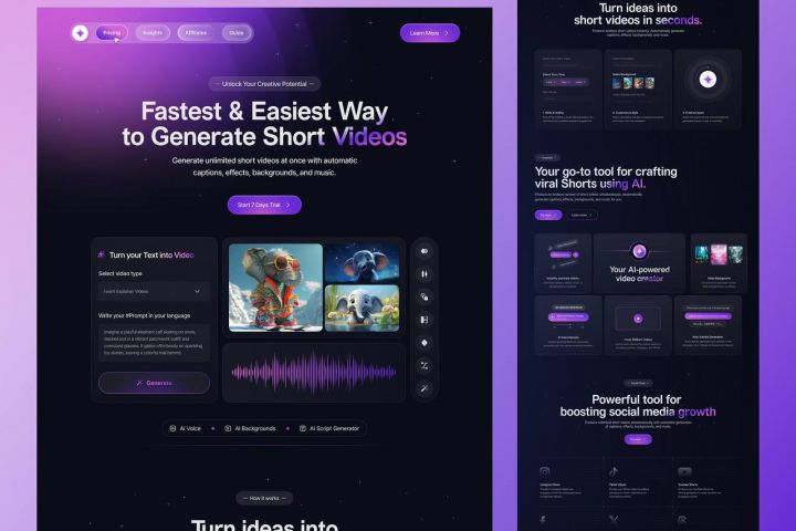 Разработка лендинга для ИИ генерации шорт видео