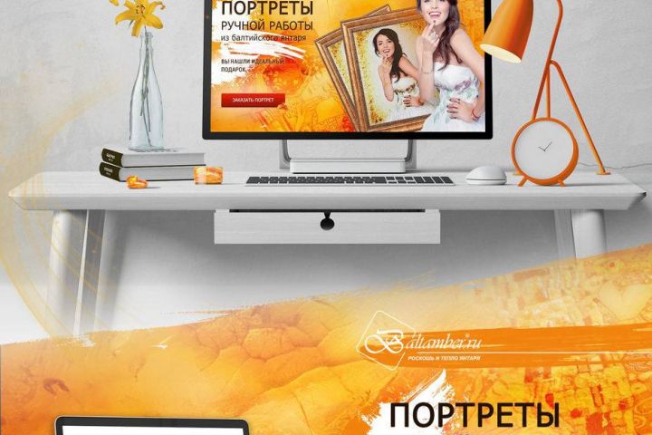 Разработка сайта для компании люкс портретов ручной работы из янтаря. ИИ использовалось при создании сайта