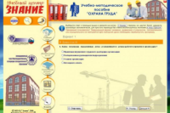 Сдача экзамена по охране труда на предприятии. Вопросы могут содержать видео, анимаци, текст, графику.
