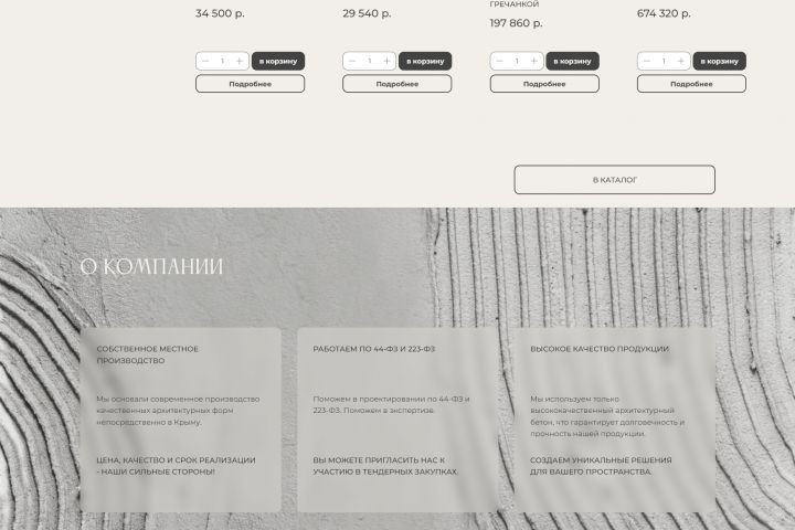 Задача: создать интернет-магазин для компании, занимающейся производством изделий из архитектурного бетона