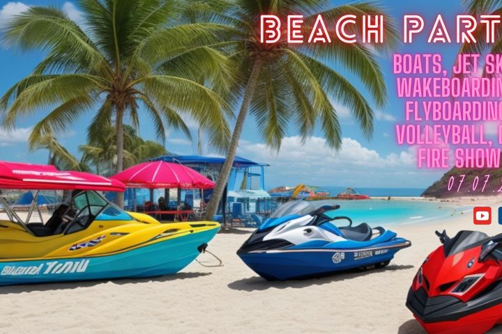Boats, jet skis, wakeboarding, flyboarding, volleyball, DJ, fire show