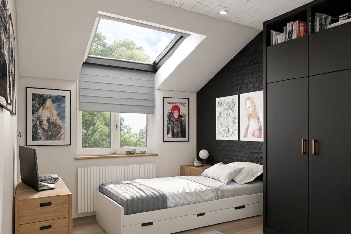Выполнено 3-D изображение комнаты с черно- белой цветовой гаммой.