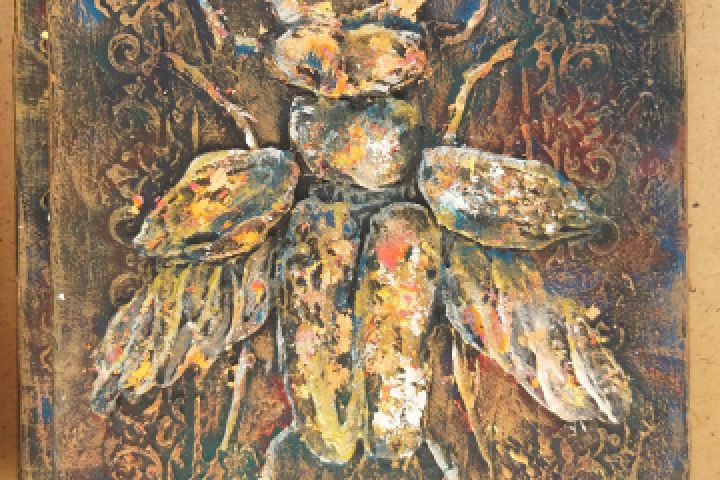 Одна работа из триптиха "Насекомые" размер 15х18 Холст на подрамнике. Рельефная паста, акрил, поталь.