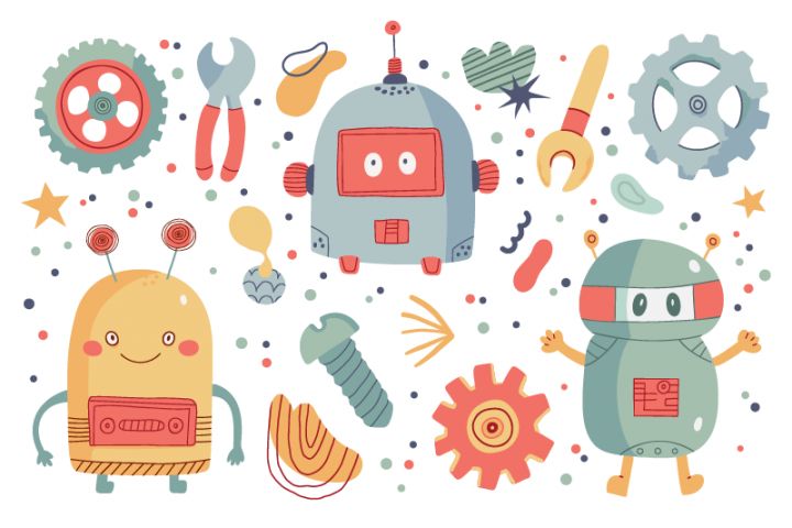 Милые роботы детская иллюстрация
