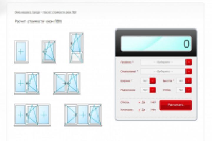 Онлайн калькулятор расчета стоимости окон ПВХ с расчетом рассрочки, формированием полного заказа и отправкой исполнителю.