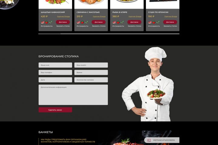 Разработка дизайн-макета лендинга для кафе с возможностью доставки блюд на дом.