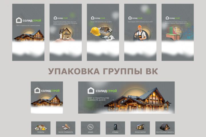 Для группы были подготовлены следующие файлы: аватарка, главная обложка, несколько файлов для мобильной обложки, обложки для разделов. За основу взят референс заказчика.