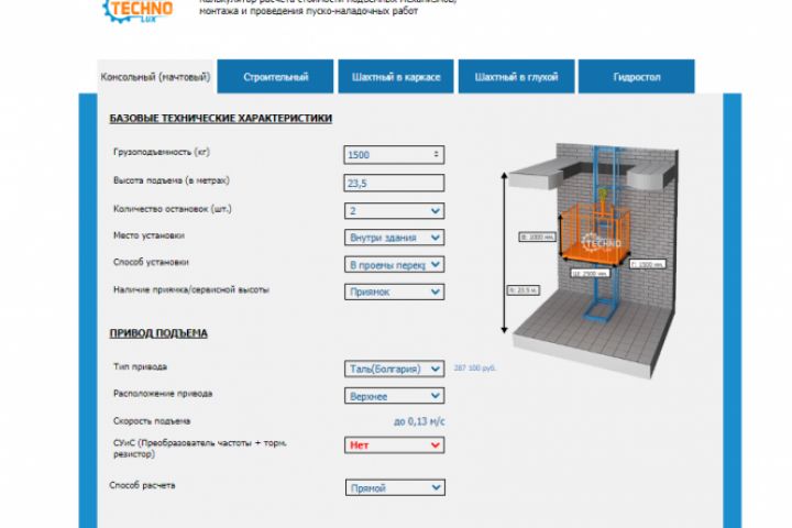 Калькулятор расчета стоимости подъемных механизмов, монтажа и проведения пуско-наладочных работ с возможностью формирования спецификации по грузоподъемному оборудованию в формате pdf и excel.
