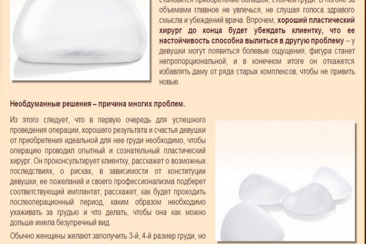 Текст для сайта на тему "Выбор имплантата для увеличения груди"