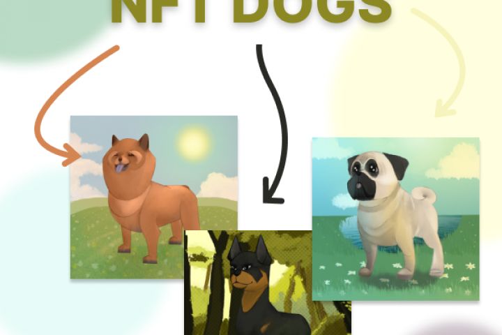 Это был сайт, посвящённый продаже NFT-изображений собак. Мы планировали развивать проект. Я добавила в коллекцию чау-чау, добермана и мопса. Эти собаки выглядели очень мило и гармонично дополняли общую картину.