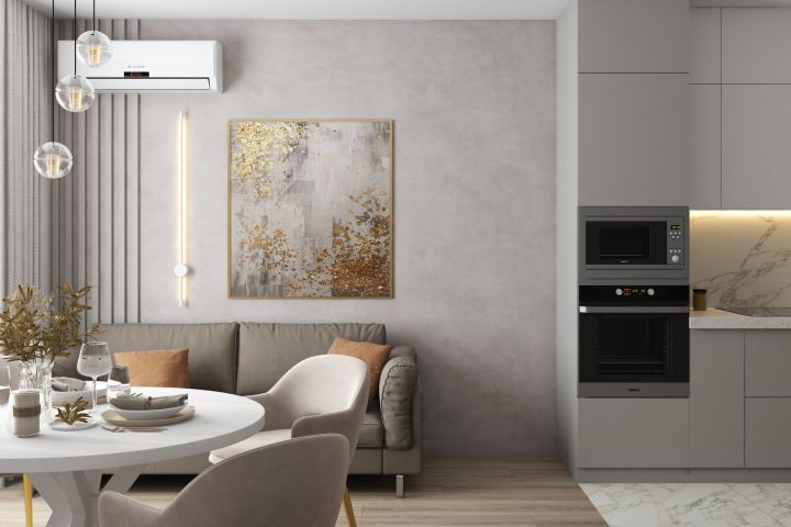 Дизайн - проект квартиры 52 кв.м ЖК Кит-кухня-гостиная