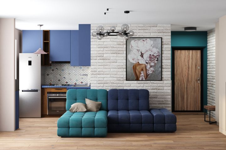 Дизайн проект квартиры 40 кв.м г.Москва - кухня-гостиная