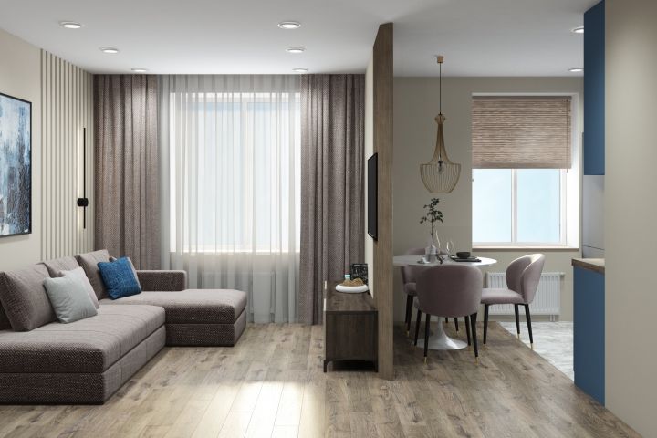 Дизайн - проект квартиры 52 кв.м ЖК Кит-кухня-гостиная