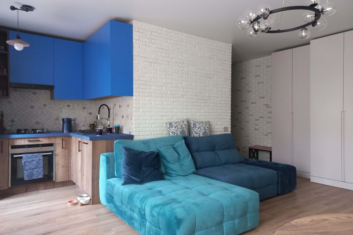 Дизайн проект квартиры 59 кв.м ЖК Сиреневый-кухня-гостиная
