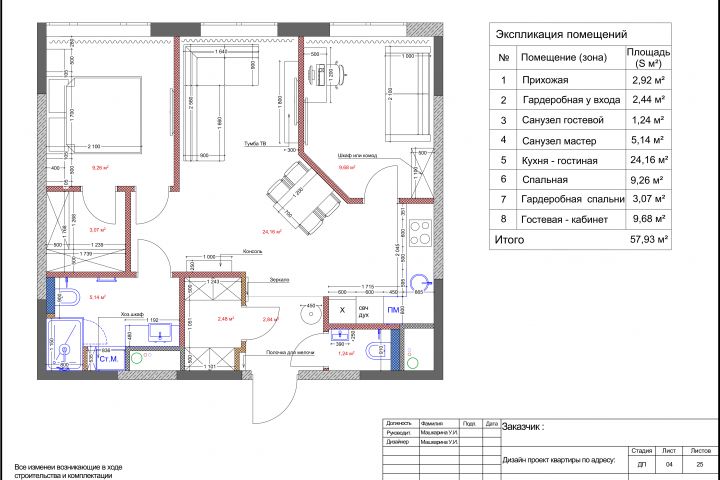 Дизайн - проект квартиры 53 кв.м ЖК Родной Город-спальня