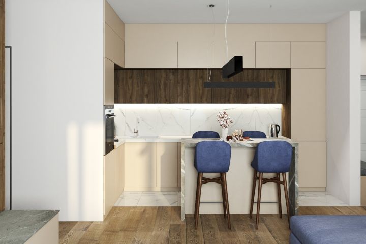 Дизайн проект квартиры 80 кв.м ЖК Лица - кухня-гостиная