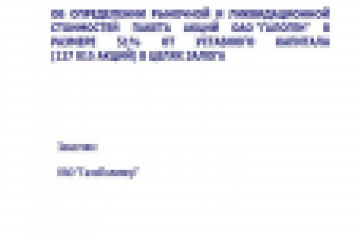 Оценка выполнена для банка, где акции завода были приняты в качестве залогового обеспечения под кредит.