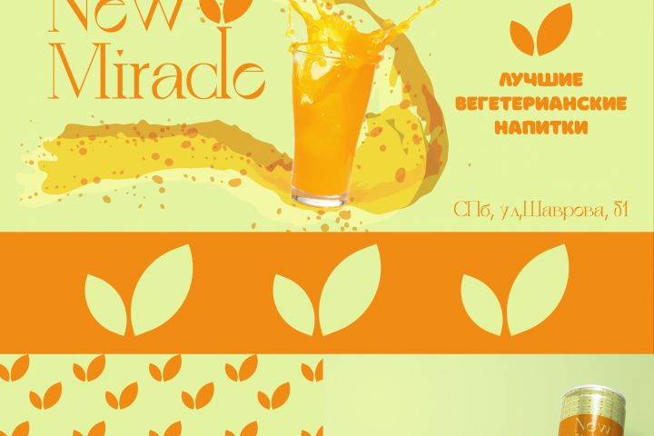 Сгенерированная ИИ компаниями, продающая вегетарианские напитки. Основной цвет - оранжевый.