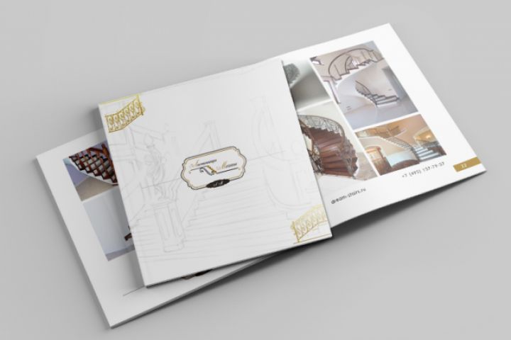 Каталог лестниц и дверей в виде книжки. Во вложении некоторые страницы из буклета.