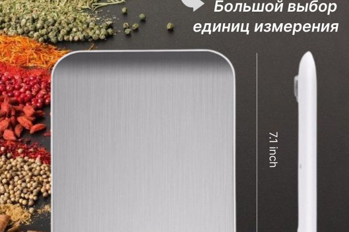 Кухонные весы Задача: выделить товар среди конкурентов, отобразить визуально (иконками) всю информацию, расположить товар крупно