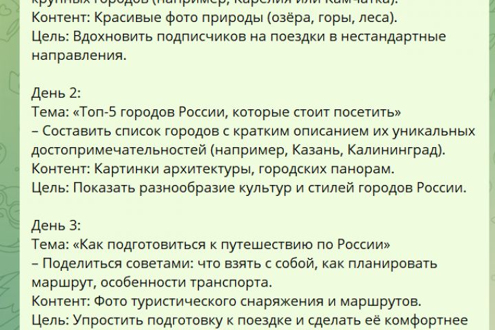 Контент-план для блога ВКонтакте о путешествиях по России.