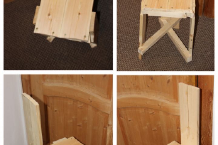Стул из досок, брусьев и саморезов.