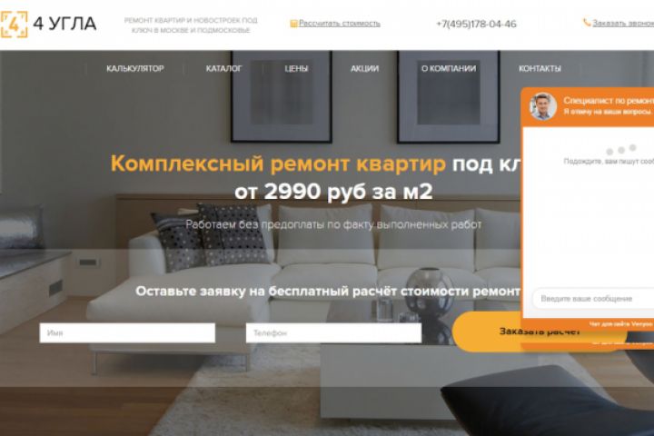 Разрабатывали комплекс (Landing page + контекстная реклама) в нише "Ремонт квартир в Москве и области"