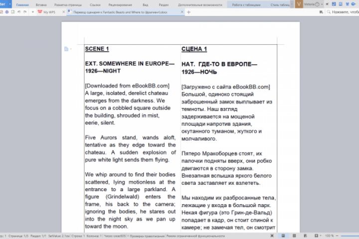 Перевод 3-х сцен сценария к фильму Fantastic Beasts and Where to