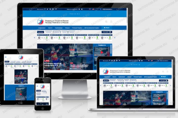 Сайт Федерации Гандбола России (демо главной) Услуга: Адаптивная вёрстка сайта по макету заказчика Год: 2017