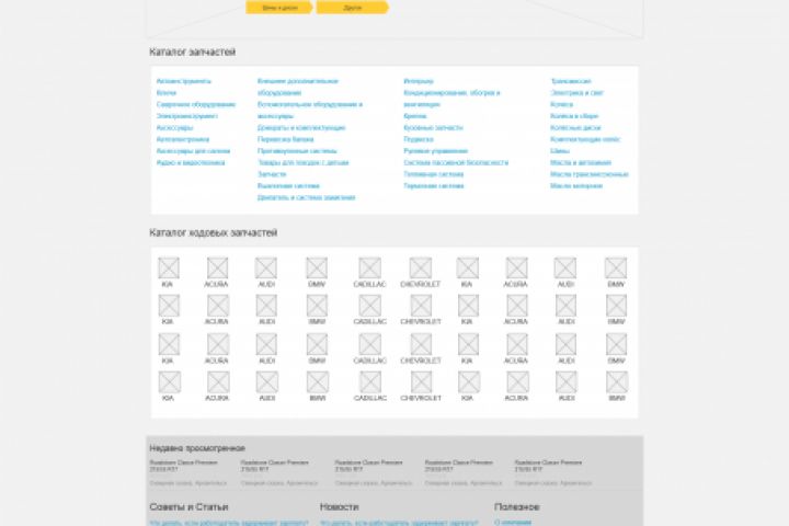 Прототип главной страницы сайта по поиску деталей для авто