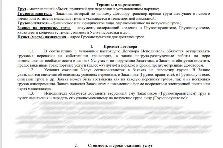 Составлен договор с самозанятым на услуги транспортировки грузов компании