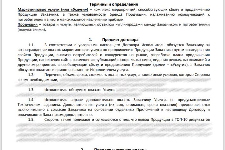 Составлен договор на маркетинговые услуги между компанией и ИП