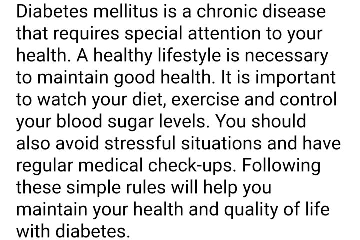 Сахарный диабет - это хроническое заболевание, которое требует особого внимания к своему здоровью. Для поддержания хорошего здоровья необходим здоровый образ жизни. Важно следить за своим питанием, заниматься спортом и контролировать уровень сахара в крови. Также следует избегать стрессовых ситуаций и регулярно проходить медицинские осмотры. Соблюдение этих простых правил поможет вам сохранить здоровье и качество жизни при диабете.