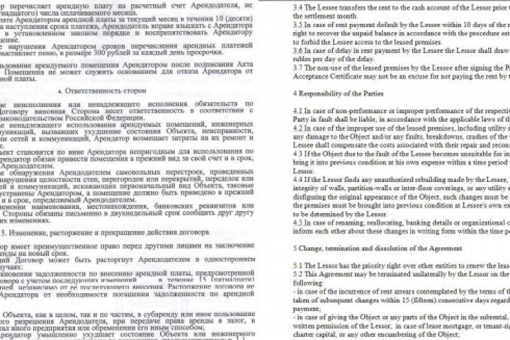 Перевод с русского на английский договоров аренды и приложений к ним.