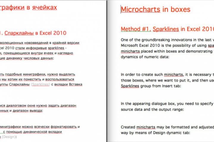 Статья о различных способах построения микрографиков в ячейках Excel. Перевод с русского на английский.