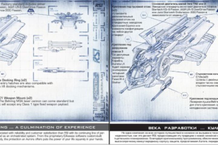 En-Ru. Брошюра о новом космическом корабле Aurora 2943 от RSI Industries. На основе готовящейся к выходу игры Star Citizen. Пример перевода PDF с сохранением исходного оформления (верстка с подбором шрифтов).
