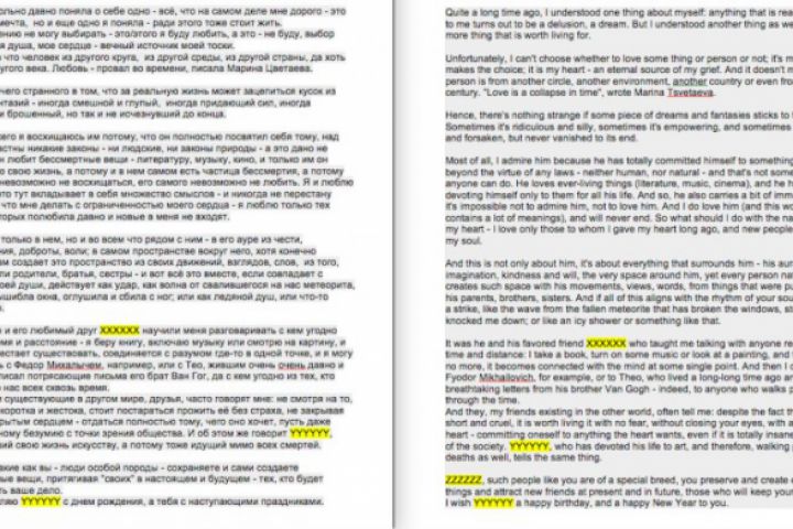 Перевод одного очень поэтичного и красивого письма с русского на английский. Имена спрятаны :)