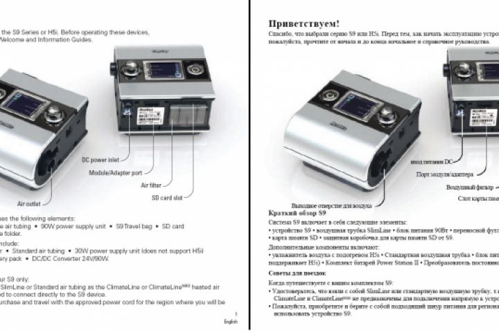 Перевод с сохранением оформления руководства по респираторному оборудованию S9-Series (English-Russian)