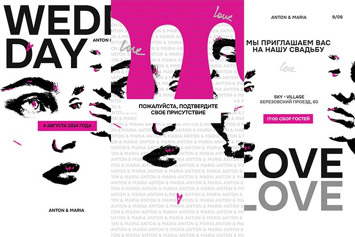 Дизайн анимированного приглашения на свадьбу выполнен в 3 вариантах: 1. статичные макеты 2. анимация 20 секунд 3. сайт-приглашение с данным дизайном на тильде