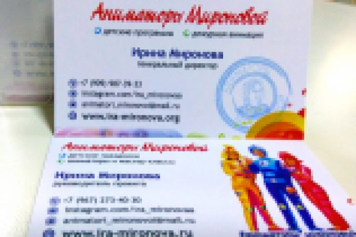Визитки для компании "Аниматоры Мироновой"
