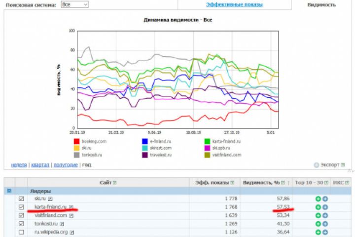 Этот сайт создавался под информационные запросы по теме "Горнолыжные курорты Финляндии". На привлеченную аудиторию рекламировалась услуга аренды коттеджей в Финляндии. Также он составлял часть тематической PBN для продвижения коммерческого сайта.