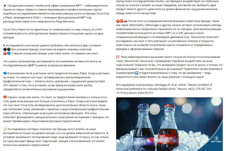 Cоздание текстового и визуального контента для сообщества центра МРТ с учетом пожеланий заказчика по цветовой гамме и наполнению, адаптация материалов сообщества к формату Инстаграм. Использую в работе визуальную нейросеть Midjorney, графические редакторы.
