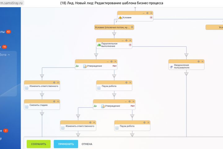 Задачи автоматически ставятся при перемещении заказа на определенный этап.