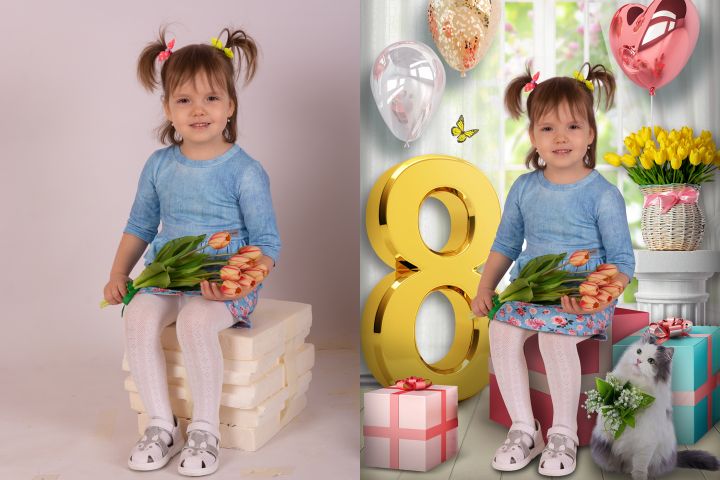 Обтравка, вставка в шаблон, дорисовка юбки, легкая ретушь